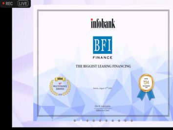 JAKARTA, 27 AGUSTUS 2020 - Berkinerja sehat dan konsisten memberikan pelayanan terbaiknya, PT BFI Finance Indonesia Tbk (BFI Finance) meraih sederet penghargaan dalam “Infobank Multifinance Awards 2020”. Penghargaan yang diselenggarakan secara virtual ini (27/8) memberikan rating atas kinerja perusahaan-perusahaan pembiayaan (audited) tahun 2018 dan 2019.